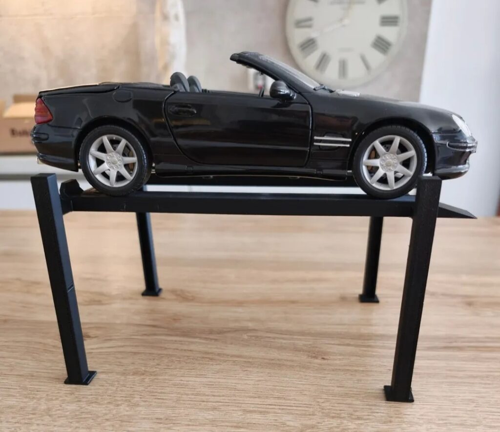 En cochetos hemos querido ofrecer al cliente la posibilidad de adquirir una réplica exacta del coche que nos compren,en este caso se trata del SL500 R230 que tenemos en stock a escala 1:18 con todos los detalles incluso apertura del techo variable,el coche tiene un soporte hecho en 3d a medida